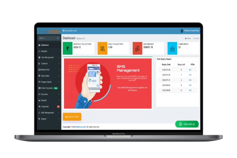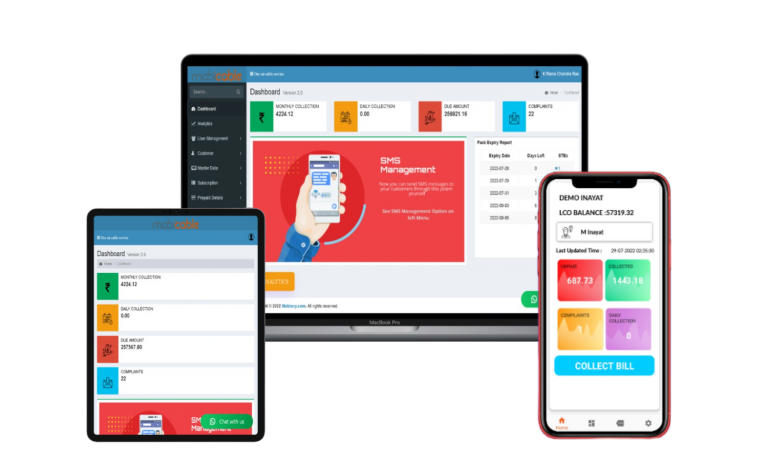 Using Mobinet Web Portal, the operator may manage clients, staff, and technicians from a single location. In this system, the operators may set up the Pack charges and check complaints and other information, giving him a comprehensive image of his company at any given time. This Web Application may be used to send renewal or payment reminders, as well as SMS alerts, to customers. during an outage. The operator may see how his firm is performing over time by looking at several analytics reports. When the broadcaster makes modifications, Alacarte Channels tariffs are instantly updated in this system.